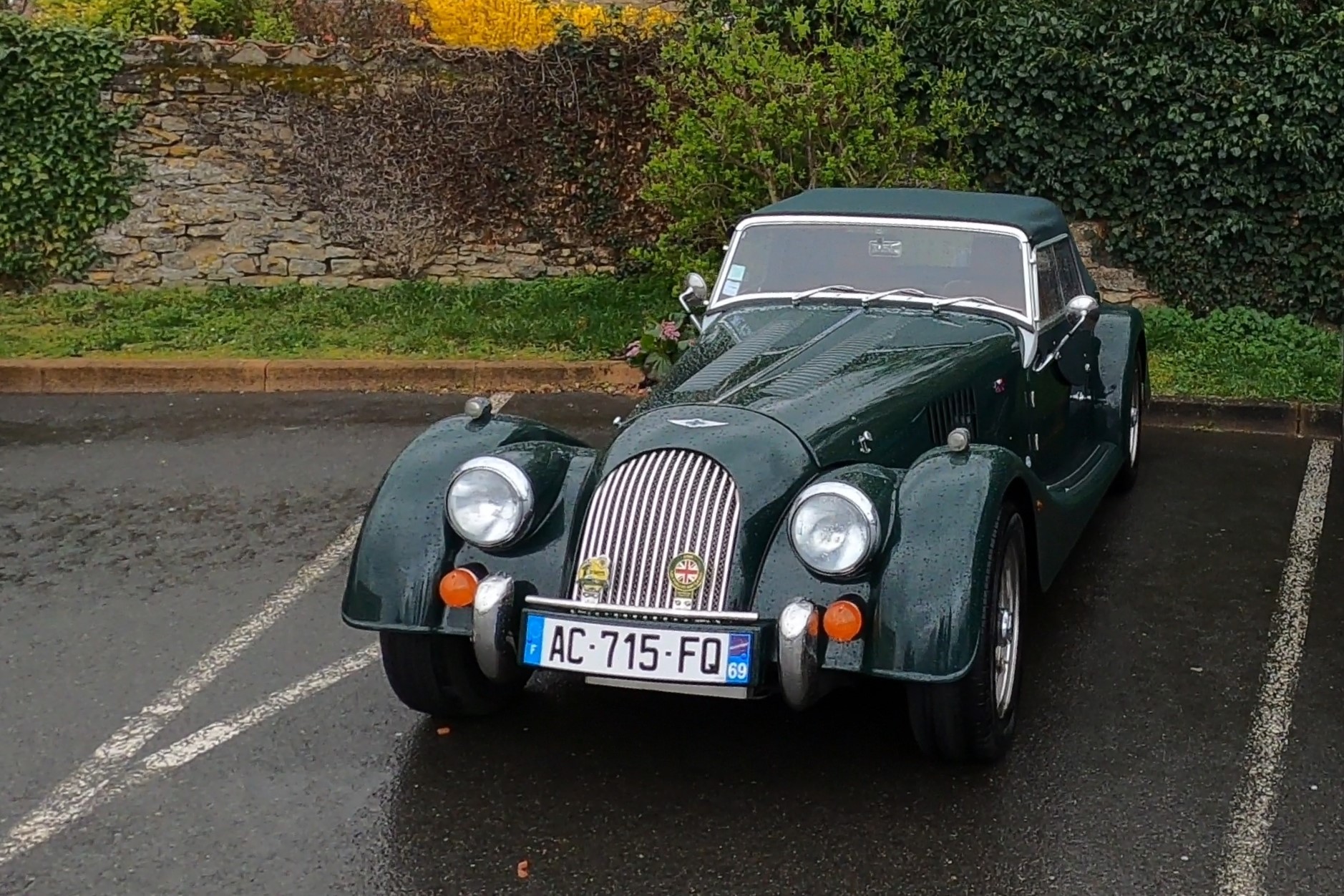 La TR4 de Jean-Paul avait dû retourner malheureusement trop vite à la maison mais un autre véhicule l’avait remplacée. Les moins courageux nous ont rejoints au déjeuner.