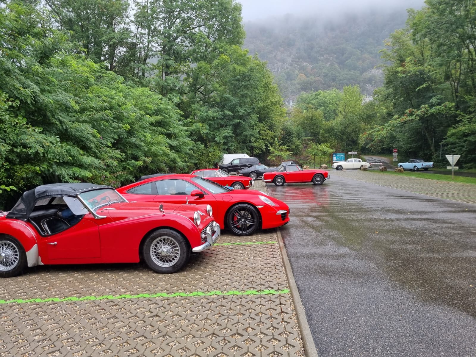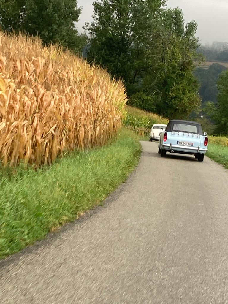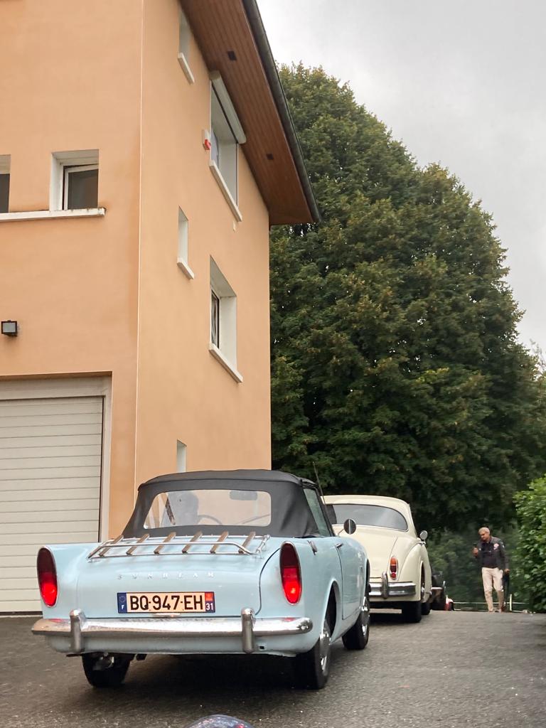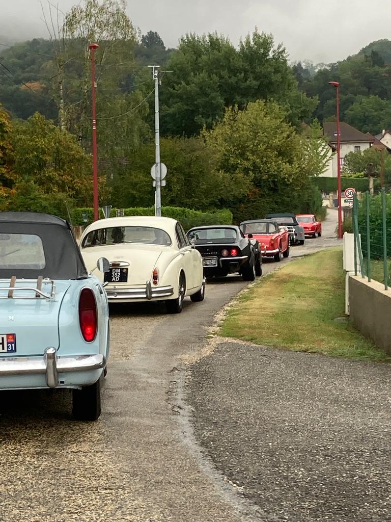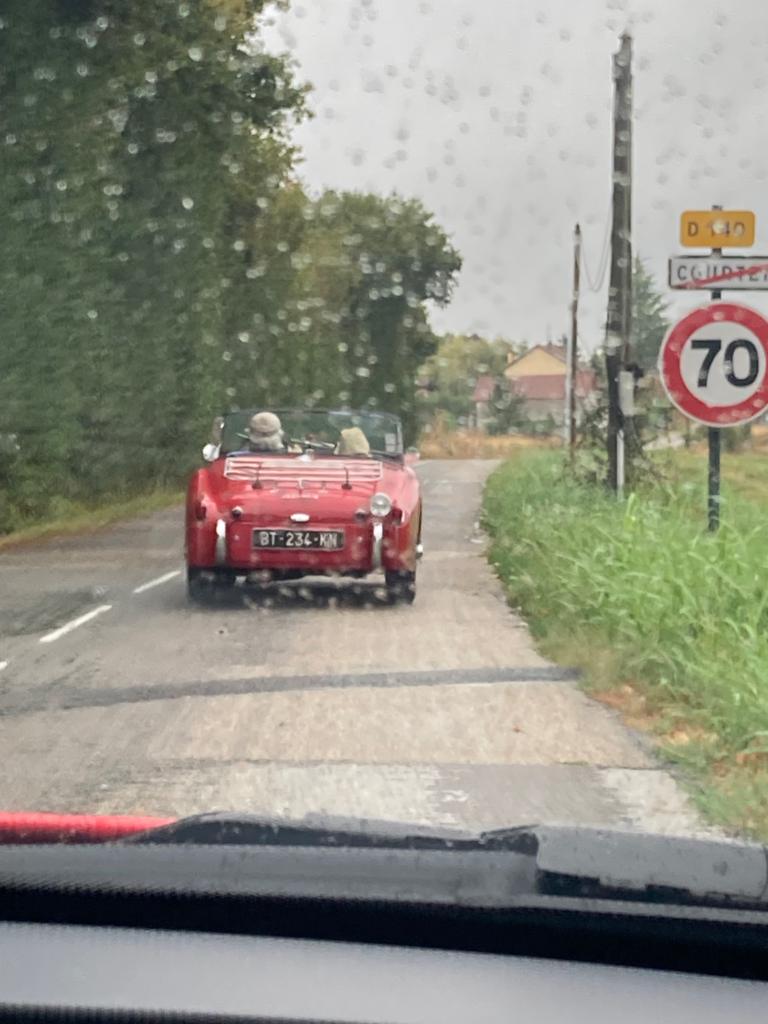 10 équipages étaient au départ de Crémieu avec la pluie comme invitée surprise après plusieurs semaines de canicule. Aussi cette fois-ci, nos belles autos n’ont pas craint la chaleur, seuls les essuie-glaces ont eu quelques déboires. La Sumbeam Alpine et la Facel-Vega en ont perdu un en route alors que la Corvette avait un défaut électrique sur les siens.