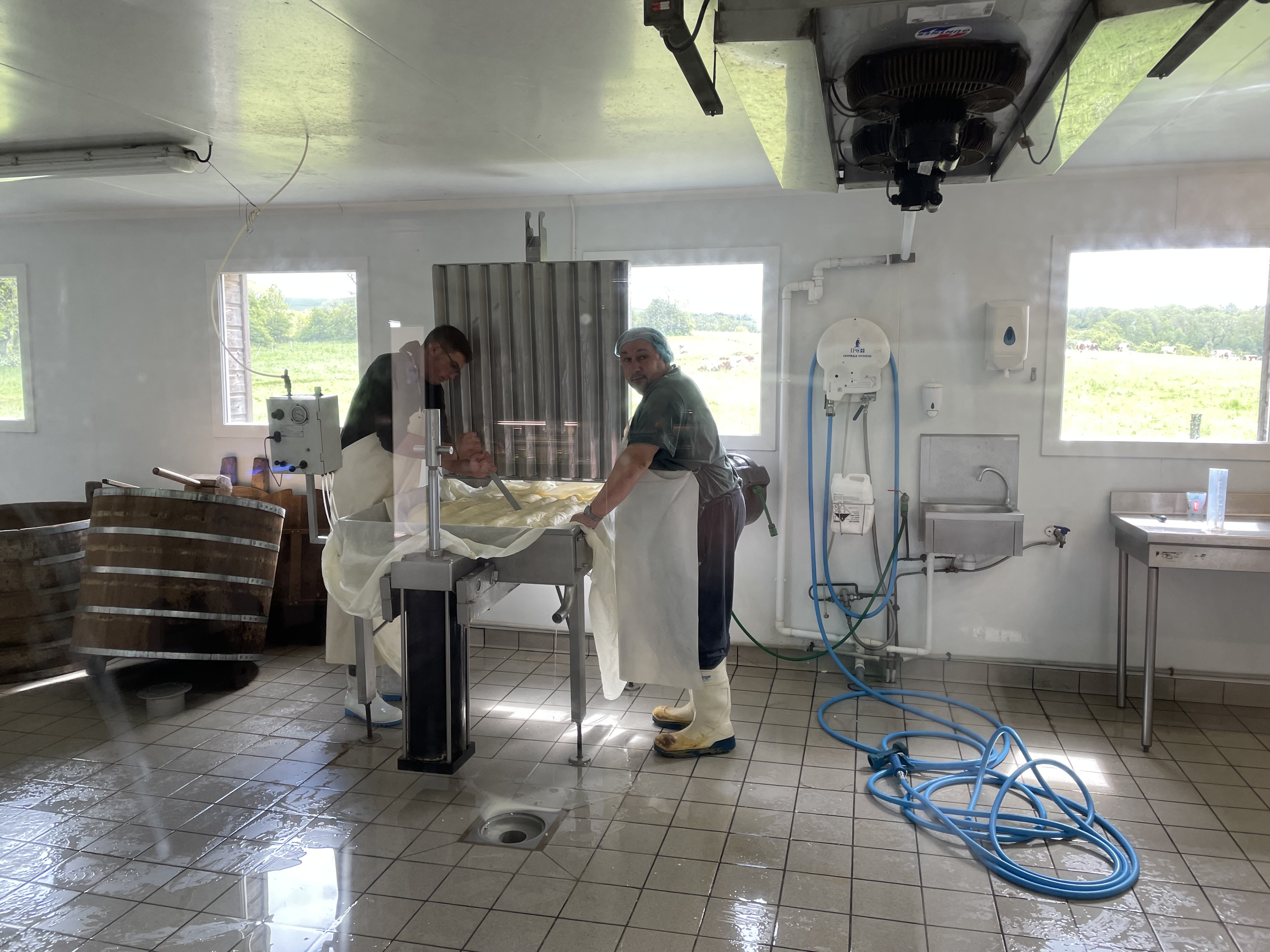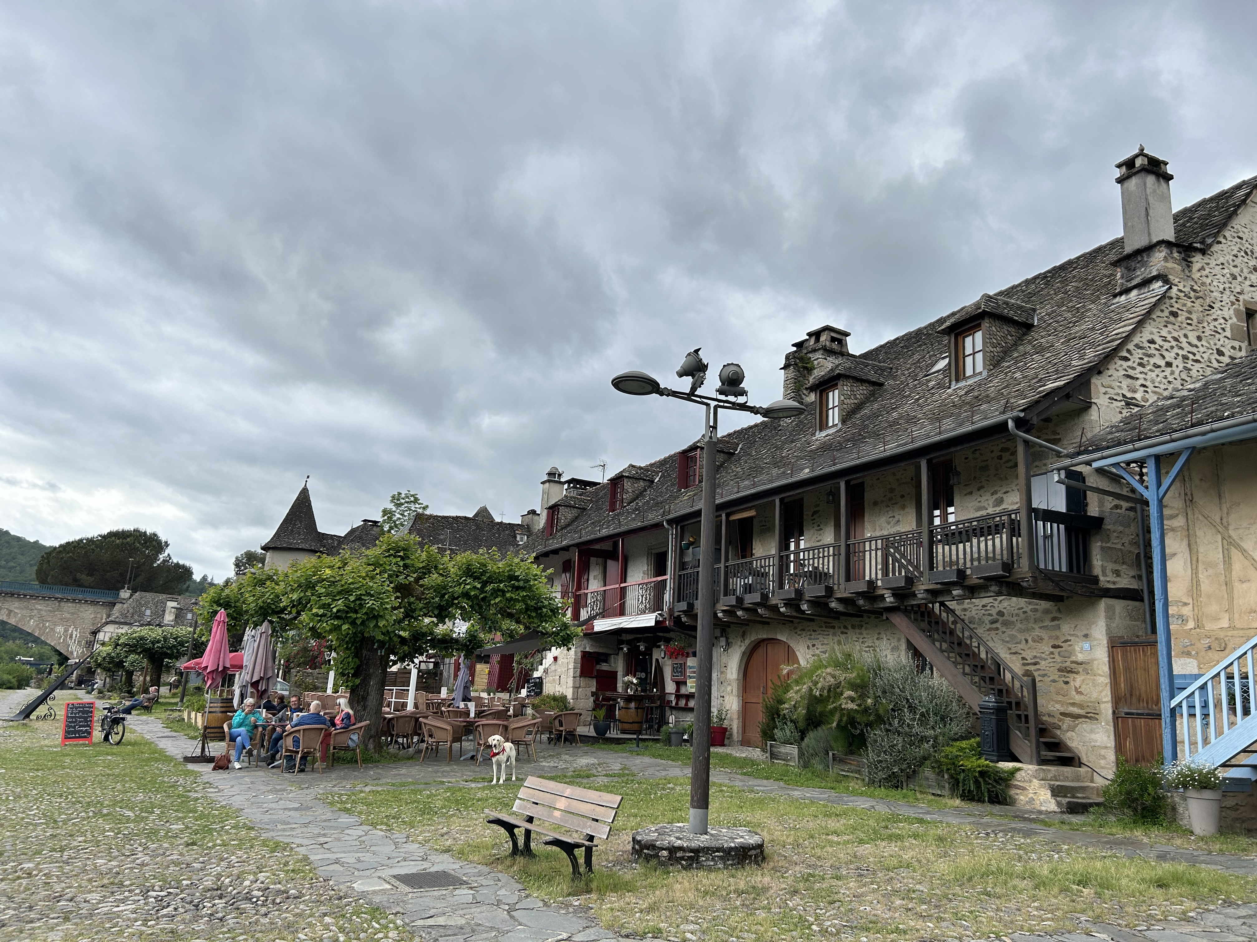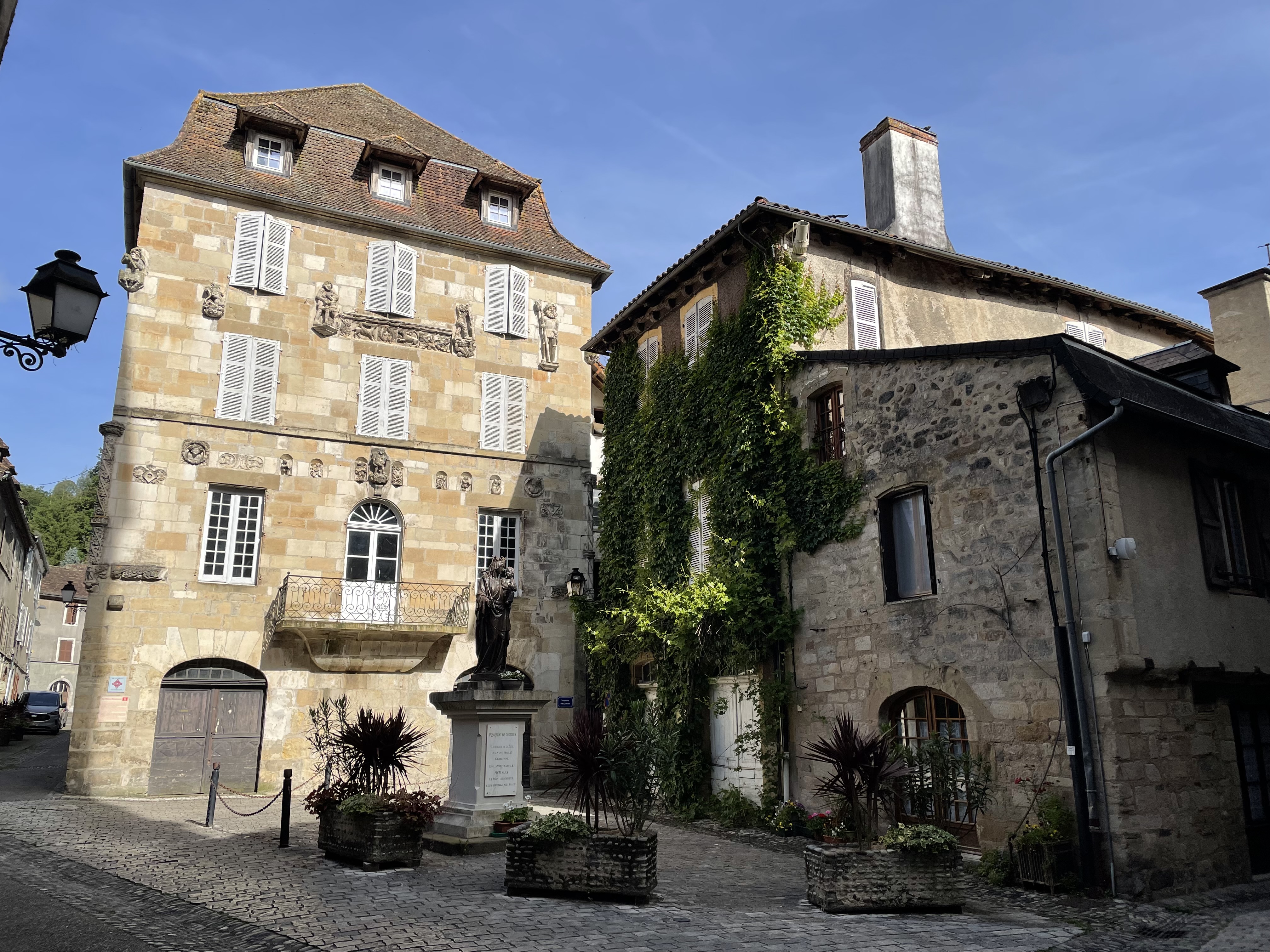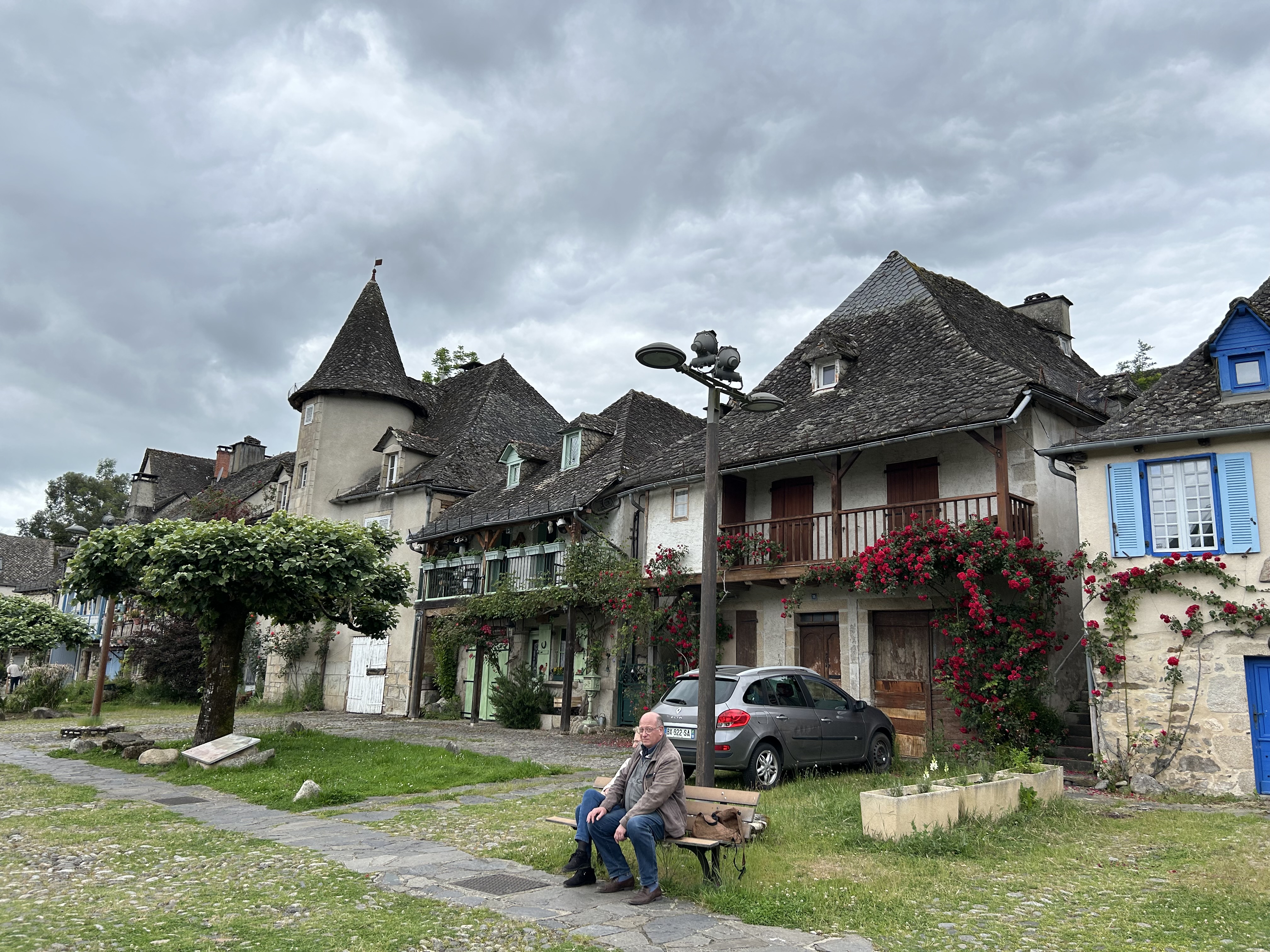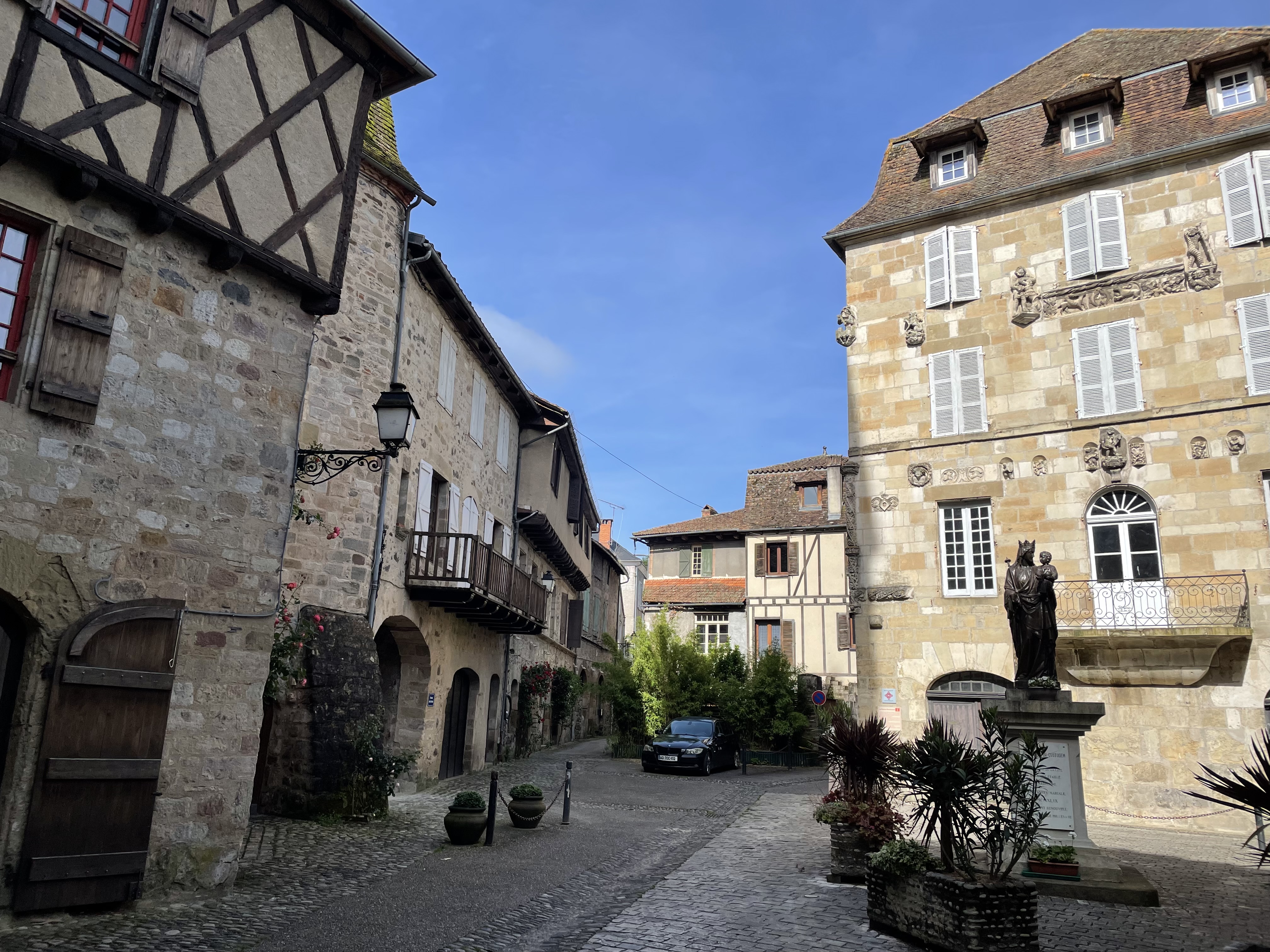 Jeudi 30 – La route des fromages. Nous quittons l’Auvergne pour grimper dans les Monts du Cantal. Toujours de très belles routes mais en plus de la pluie nous trouvons un épais brouillard en haut du Puy Mary. Heureusement nous le soleil nous attendait à Salers pour une dégustation de Cantal et la visite de ce magnifique village médiéval fortifié. Fin d’étape au château de Vezac surplombant le golf.