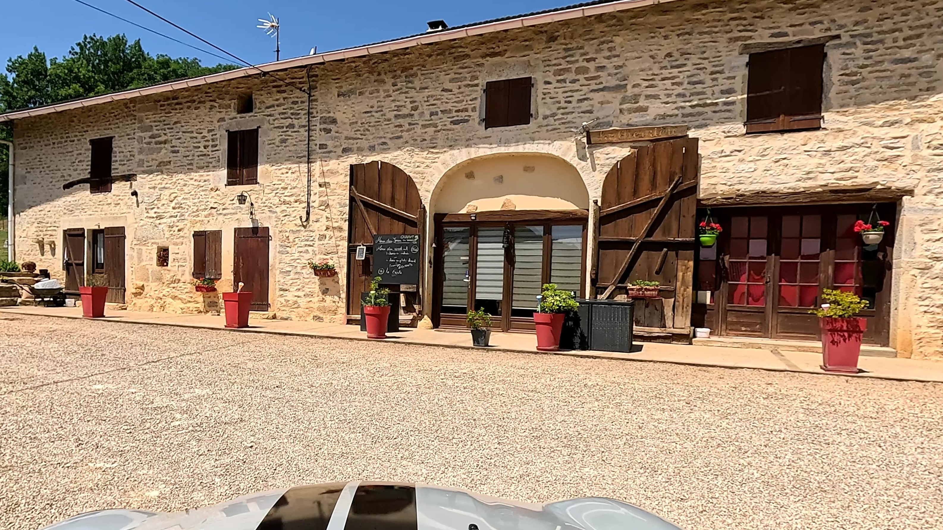Pour le déjeuner, à seulement quelques kilomètres, mais déjà dans le Jura, nous trouvons un cadre chaleureux à la ferme auberge « La Chevrière ». Malgré une canicule particulièrement pesante l’après-midi, cette magnifique journée a été un vrai plaisir. Dommage cependant que certaines voitures anciennes, sensibles à la chaleur, soient restées au garage.