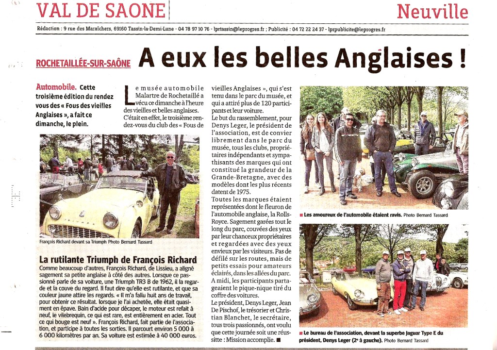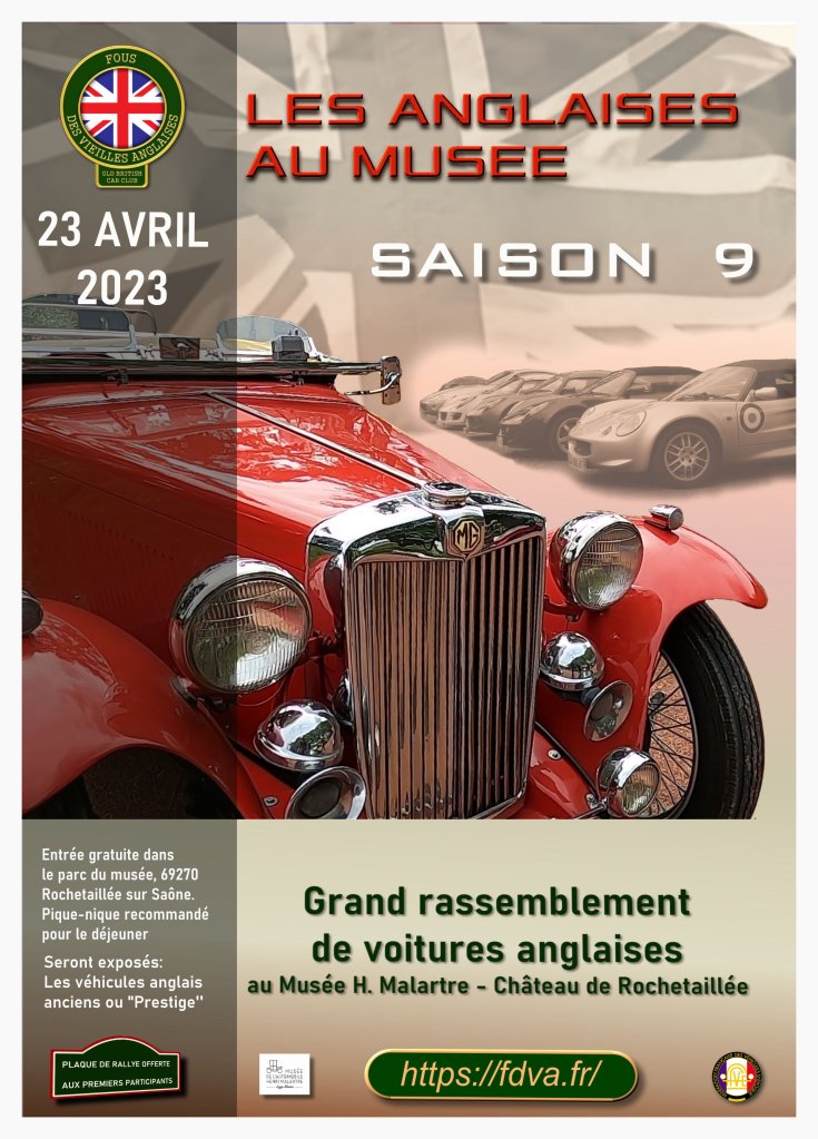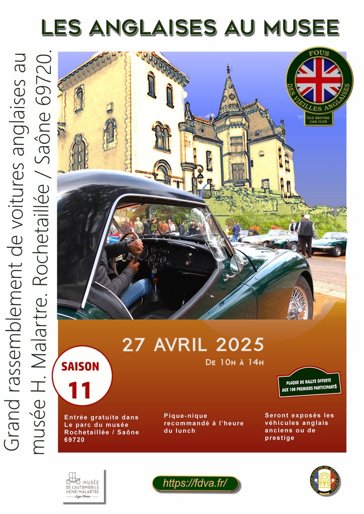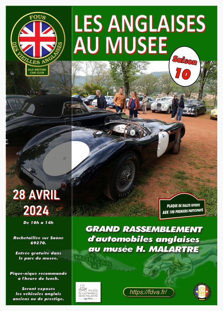 Le 24 avril 2022, jour choisi par la FFVE pour célébrer la Journée Nationale des Véhicules d’Epoque, L’association FOUS DES VIEILLES ANGLAISES proposait à tous les amateurs de belles Anglaises, anciennes ou d’exception, de se réunir au musée Henri Malartre à Rochetaillée / Saône, magnifique musée de l’automobile de la ville de Lyon.
